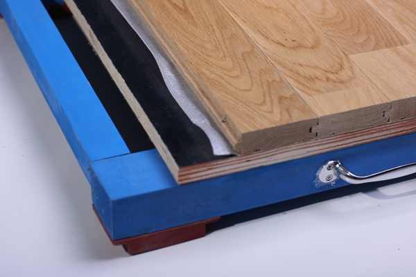 運動木地板為了能夠滿足運動員的需求,在吸震和回彈方面需要達到一定的標準(沖力吸收需達到53%以上,球體反彈需達到90%以上)。為了達到標準,離不開運動木地板的彈性層(龍骨+彈性減震墊),彈性材料的添加,比如說橡膠墊,使得運動木地板在吸震方面有了很大的提升。